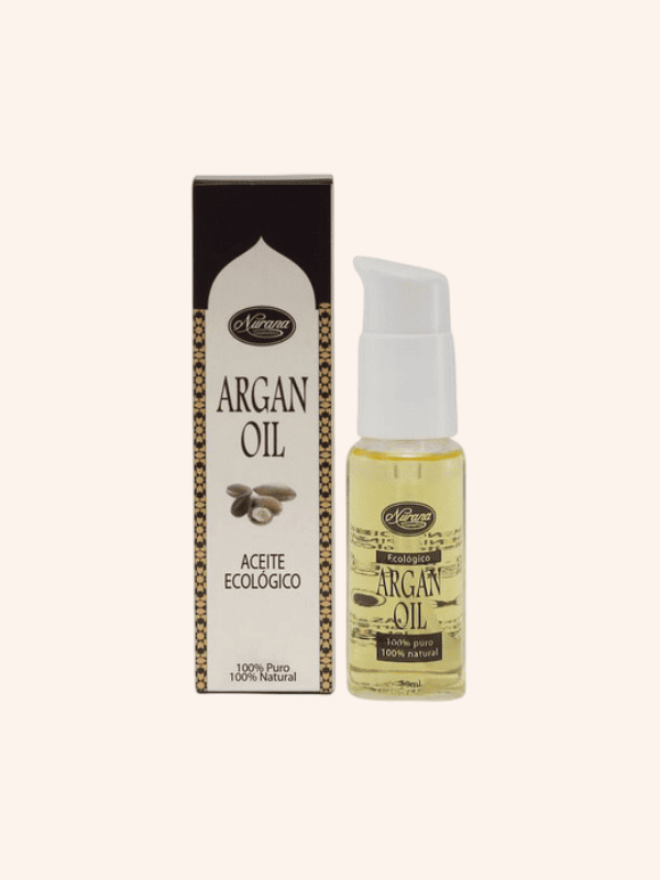 Aceite Argán Nurana 20 ml. Los aceites esenciales son una alternativa a la cosmética de cremas y el aceite de Argán es uno de los más cotizados y mejor valorados por los beneficios que aporta a la piel, sobre todo a las maduras. Es un producto natural que se extrae de la presión de las semillas del Argán, árbol del sur de Marruecos con excelentes propiedades dermatológicas. Este aceite de Argán de Nurana es de cultivo ecológico, 100% puro y 100% natural, extraído por primera presión en frío, que garantiza su máxima calidad. Entre sus beneficios, destacan: la hidratación y suavidad en pieles secas. Ayuda a regular el exceso de sebo. No obstruye los poros. Es antiséptico, antioxidante y regenerador celular. Se puede usar para prevenir las estrías del embarazo, para quemaduras solares, cicatrices y manchas. Repara las manos secas y agrietadas y refuerza las uñas frágiles.
