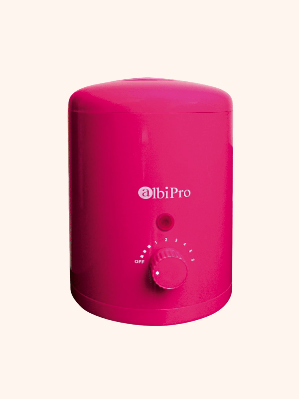 Calentador Cera Fucsia Albipro 2819F. Mini fusor que calienta todo tipo de ceras. Su capacidad máxima es de 165 ml. Ofrece un calentamiento de temperatura de 35ºC a 100ºC. Con tapa para evitar la contaminación de la cera. Cilindro de aluminio para su fácil limpieza.