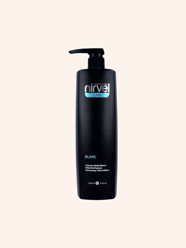 Champú Blanc Nirvel 1000 ml. Champú que ayuda a reducir los tonos amarillentos y reaviva el brillo de los cabellos grises y bancos. Hidrata y suaviza, por lo que los resultados se traducen en un cabello con más brillo, suaves y les devuelve la claridad perdida.