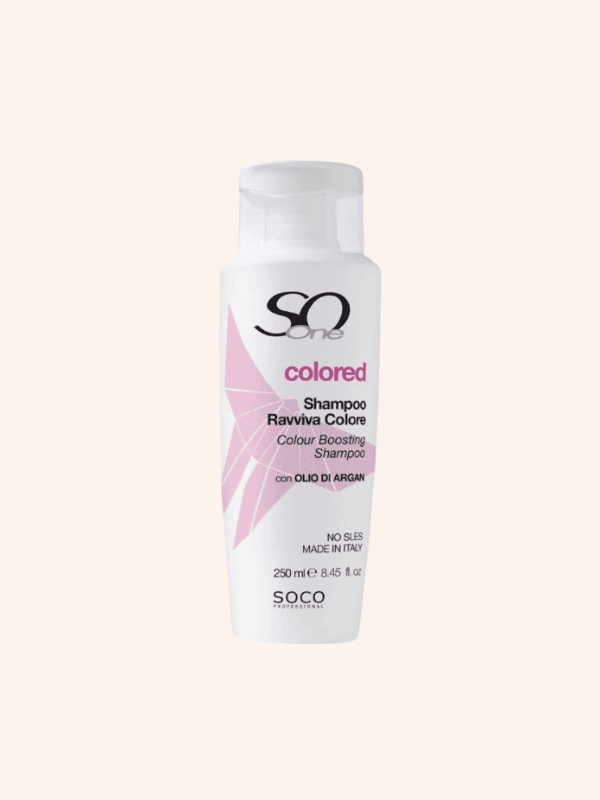 El Champú Colored Reaviva Color So One 250 ml es un producto para el cuidado del cabello que no contiene sal ni sulfatos. Hidrata y limpia en profundidad los cabellos teñidos. El aceite de Argán presente en su formulación hidrata, regenera y reduce la pérdida del color prolongando su duración. El cabello se torna suave y brillante. Para unos resultados excelentes aplicar, después del lavado, el Acondicionador Colored Reaviva Color So One.