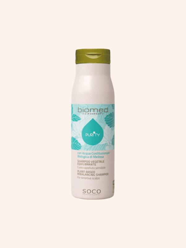 Champú Vegetal Equilibrante Biomed 250 ml. Champú de base vegetal delicada. Enriquecido con Agua Celular Biológica de Melisa. Acción emoliente, tonificante y refrescante, que, junto con las propiedades hidratantes del Aloe Vera y las funciones calmantes del Extracto de Almendras Biológicas y el Ácido Glicirretínico orgánico obtenido del Regaliz, hace que esta preparación sea ideal para limpiar con delicadeza, purificar y calmar el cuero cabelludo sensible y con hiperhidrosis.