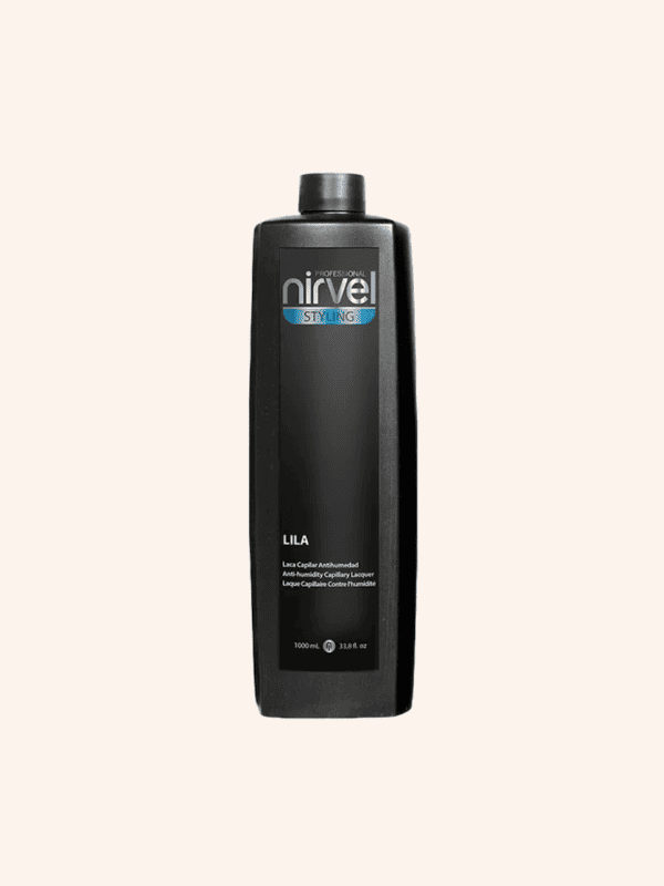 La Laca Granel Nirvel Lila 1000 ml proporciona fijación fuerte y brillo. Rechaza la humedad del ambiente y no descama el cuero cabelludo. Se elimina con un ligero cepillado.
