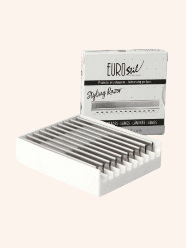 Disfruta del corte de cabello a navaja con las Cuchillas Styling Razor Eurostil. Cuchilla fabricada con el mejor acero inoxidable recubierta por una capa de teflón que aporta más suavidad y durabilidad al corte. Caja con 10 cuchillas.