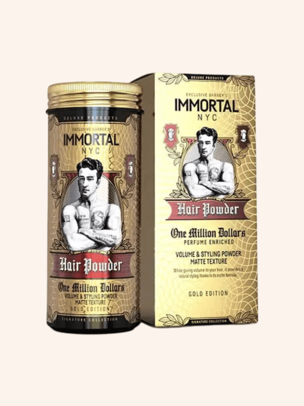 Polvo de Fijación y Volumen Immortal. Fijación mate y con volumen. 20 gramos de producto con la calidad de la firma Immortal. Enriquecido con perfume.