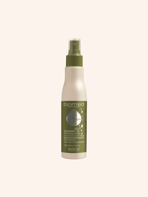 El Protector Térmico Defender Biomed protege tu cabello hasta los 230º de temperatura. Además, es anti humedad y anti encrespamiento. Gracias a su fórmula compuesta por polímeros termo activos y el complejo de aminoácidos Vegansilk*, crea una barrera invisible que protege contra la humedad y las altas temperaturas de hasta 230°. Aparte de su acción reparadora, deja el cabello liso, brillante, suave, fuerte y protegido durante 3-4 lavados. El Protector Térmico Defender Biomed crea una «barrera» invisible sobre el cabello; por lo que se vuelve indispensable contra la humedad y el calor. Este spray, versátil y fácil de usar, protege tu cabello del calor de secadores, planchas y tenacillas. Es apto para todo tipo de cabellos, especialmente para aquellos con tendencia al encrespamiento.