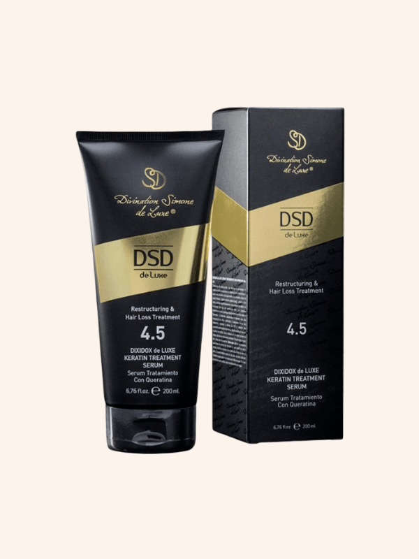 Serum Queratina DSD 200 ml. Tratamiento de doble acción que estimula el crecimiento del cabello y ayuda a mejorar su estructura. Debido a la alta concentración en Extracto de Té Verde, este serum estimula la actividad celular de la papila folicular y el crecimiento del cabello. Las isoflavonas de soja en combinación con un complejo vitamínico mineral prolonga la fase de crecimiento del cabello. La queratina favorece una alta recuperación del cabello dañado. La adenosina contenida en nanosomas estimula la síntesis de ADN y también tiene excelentes propiedades hidratantes. El cabello adquiere brillo, fuerza y volumen durante un largo periodo de tiempo además de ser fácilmente peinable.