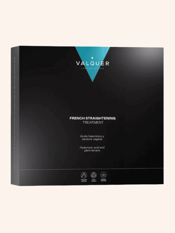 Tratamiento Alisado Francés Valquer. Vanguardista tratamiento de avanzada tecnología para conseguir una melena lisa durante 4 ó 6 meses. Solo necesita 5 minutos de peinado con secador para su mantenimiento. Con este tratamiento se consigue un volumen controlado sin encrespamiento. Es termodinámico por lo que no daña ni rompe la estructura de la fibra capilar. No interfiere con los procesos de coloración, se puede tintar el pelo antes o después del tratamiento sin estropear el cabello. En su fórmula se incorporan ingredientes naturales (agua purificada, queratina vegetal y ácido hialurónico) que aportan hidratación, flexibilidad, facilidad de peinado sin apelmazar y un increíble brillo natural. Se incluye en el pack el champú preparador (2 unidades), el tratamiento alisador y la mascarilla post alisado.